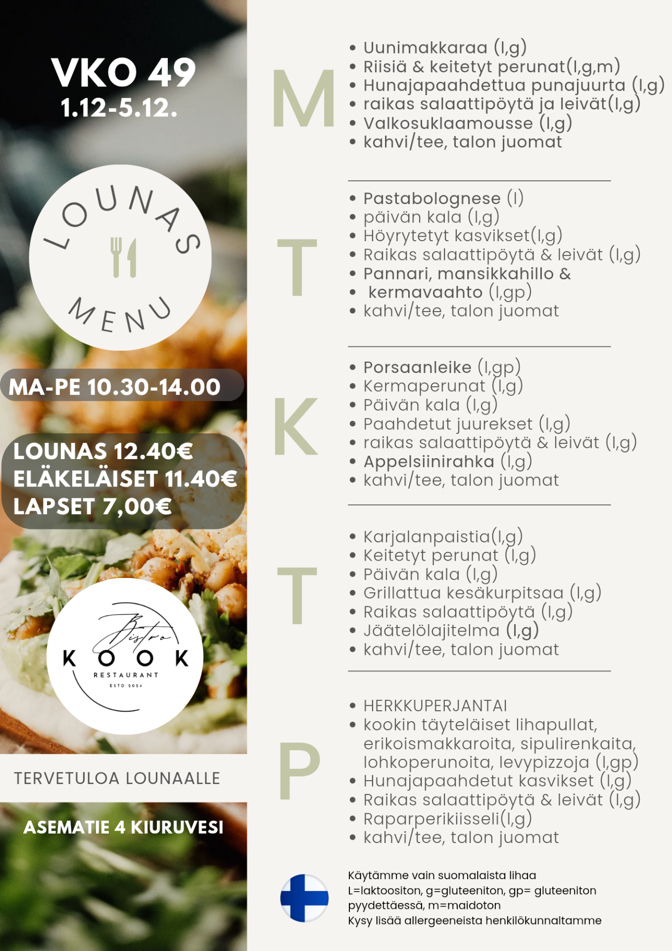 Menumme löydät kuvagalleriasta ja hinnasto-osiosta.